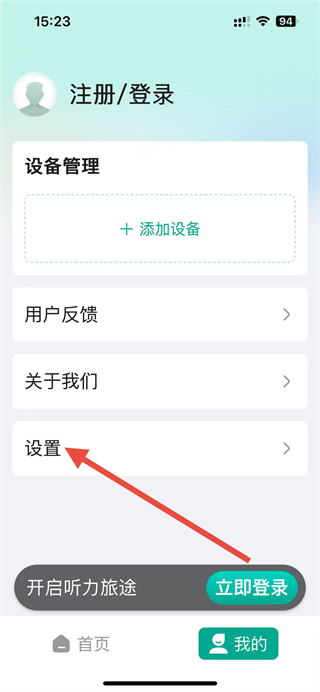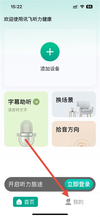 1、在讯飞听力健康首页,点击右下角我的按钮,进入个人中心界面。