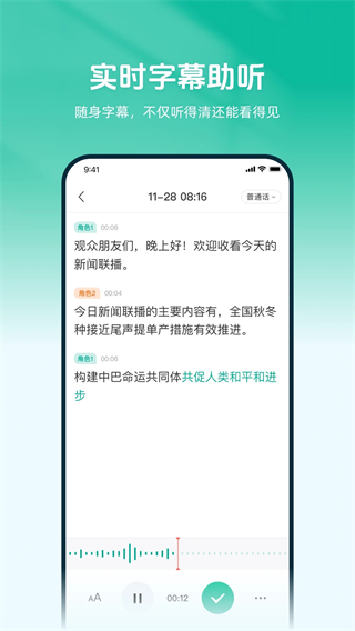 字幕助听:讯飞臻享声麦系统,20余年专注智能语音研究,通过专业降噪让录音更加清晰,不仅要听得清,更要转得准;