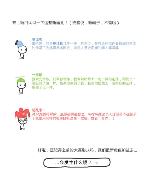 最开始,在面对复读机时,我犹豫不决要不要相信他。我并不知道跟一个对手要对抗多少局,但我选择了相信,投入一枚硬币与复读机合作。