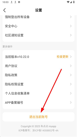 3、在设置页面中,找到退出当前账号选项,点击该选项触发退出确认提示弹窗。