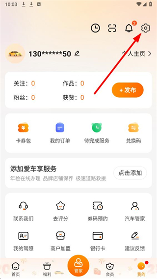 2、在我的页面,点击右上角设置图标,进入设置界面。