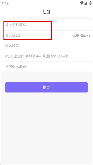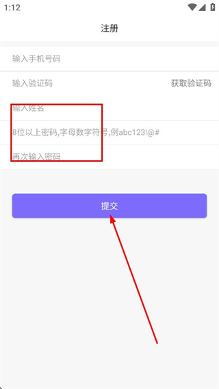 3、输入姓名,设置密码,点击提交即可完成账号注册