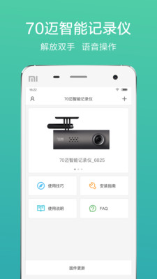 进行添加/连接行车记录仪,查看使用技巧,安装指南等帮助信息以及检测新的记录仪端固件版本;