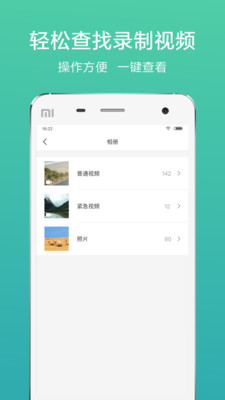 拍摄照片至本地相册,快速查看相册,普通视频,紧急视频,照片快速查看、下载、删除;