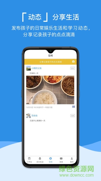 发布的动态实时通知家长查阅,随手查阅宝宝在校情况,长按还可下载高清照片和视频。