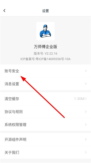 2、在设置界面中,选择账号安全选项,进入账号安全页面。