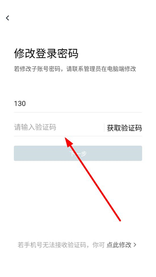 4、在页面获取验证码,输入收到的验证码后点击下一步,后续按提示设置新的密码即可完成修改。