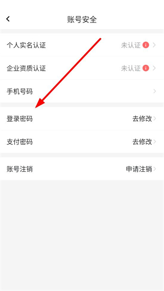 3、在账号安全页面里,点击登录密码对应的去修改选项,进入修改登录密码的页面。