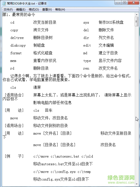 dos命令大全txt是一款收录了最全的win7系统dos命令、用法和鼠标操作的指令合集,帮助程序员们快速掌握各种命令技巧和快捷操作,需要的朋友就来绿色资源网下载完整版吧!
