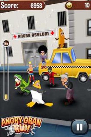 《愤怒的老奶奶玩酷跑》Angry Gran Run 是一款跑酷游戏,玩家通过摇动手机及触屏来控制老奶奶的向前狂奔,中途有各种障碍,另外还有金币,跑的越远分数越高。看到这款游戏,很显然又是最近很火爆的奔跑逃脱游戏,愤怒的老奶奶也快搞成一个系列了,背景音乐都一样,但很好听,游戏的玩法就不多说了,相信大家都会玩的。