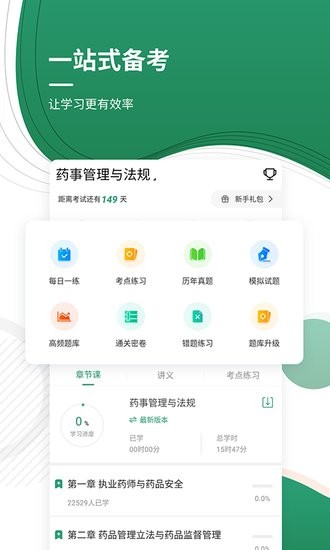 执业药师优题库官方版为大家提供了一站式备考服务,即使之前从来没接触过相关的学习内容也可以来这里看一看,超多基础课程能够帮助大家更快进入状态,找到最适合自己的学习方法,每次学完还有丰富的章节练习可以检测学习成效。