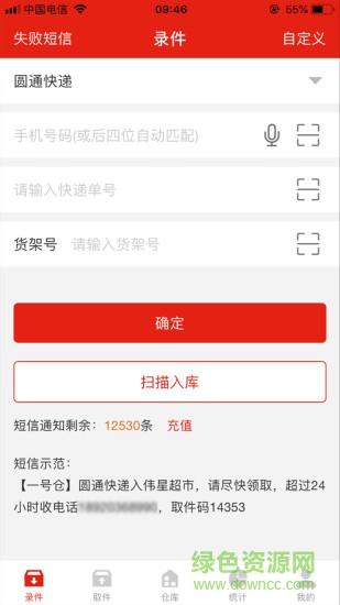 4.入库通知,支持多种存放位置码管理模式,支持多种取件码自定义