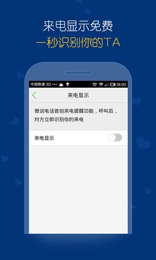 再也不用担心不知道是谁给你打电话,微友免费享受来电显手机号码功能,对方拨打电话,显示你的去电信息。