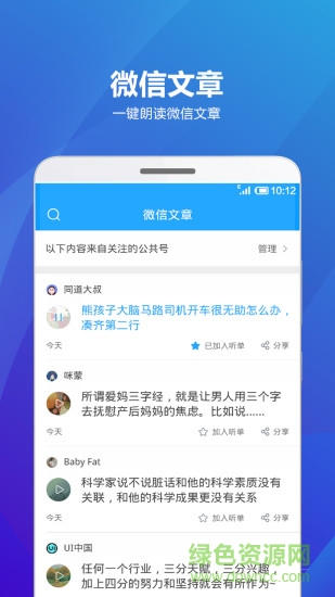 【听公共号】娱乐、新闻、情感、经济、职场10余类N多热门公共号文章一键订阅,朗读