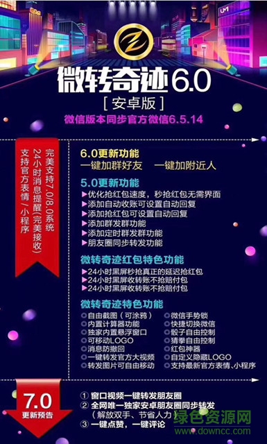 微转奇迹6.0是一款非常逆天的微商辅助工具,支持自动加友、转发、抢红包、自动回复等多种功能,让你转发分享更加方便,最好用的微商神器,来绿色资源网免费下载吧!