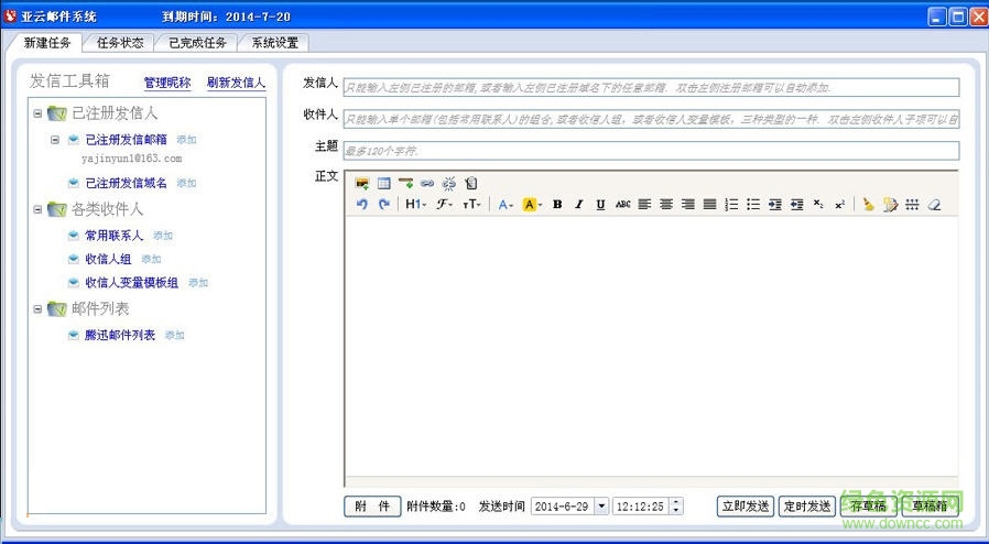 亚云邮件营销软件是一款专业的外贸邮件营销系统,可第一时间通知用户邮件的信息,帮助用户批量代发邮件,帮助你更好的宣传你的产品,有需要欢迎下载使用!