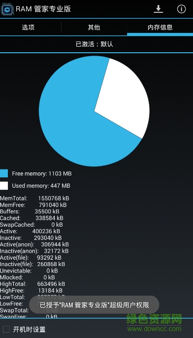 4.更多内存:与“平衡”的效果基本一致,但对于RAM超过512MB的设备效果更好,它可以给您更多的剩余内存,但会略微降低多任务能力