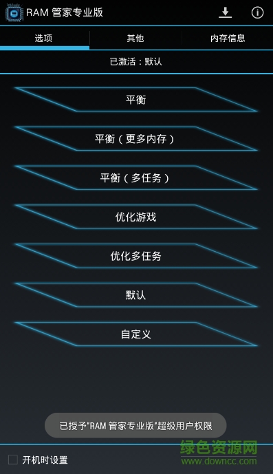 6.默认:将您的RAM设置恢复为您安装此应用前的默认设置