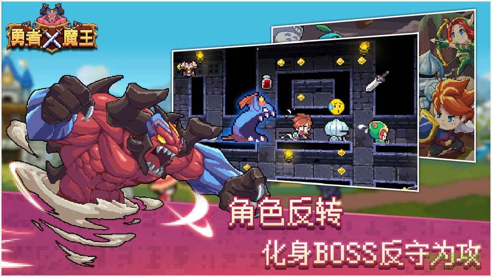 勇者X魔王手机游戏是一款复古像素风格的地宫冒险手游。游戏主题采用经典的魔王与勇者故事设定,简单轻松的游戏玩法,熟悉怀念的游戏画面,轻快有趣的背景配乐,这一切,都带领玩家再次拥有童年般快乐的游戏体验。