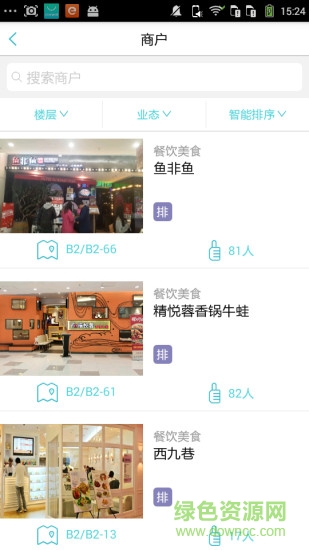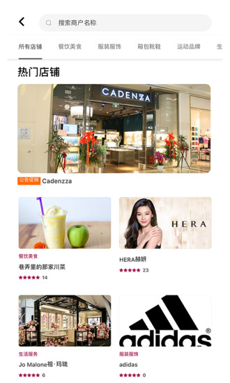 店铺查询:用户可浏览商场内所有的商户信息,并且这个系统是与大众点评同步的,会员可调用查看该店铺在大众点评的口碑数据。