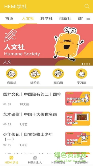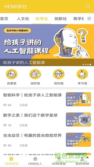 hemi学社软件安卓最新版专注于少儿亲子家庭教育服务,从启蒙到进阶再到探究组一应俱全,科学、人文、创新、商学等知识应有尽有,还有丰富的亲子阅读资源,拓宽孩子的视野,喜爱的朋友赶快下载使用吧!