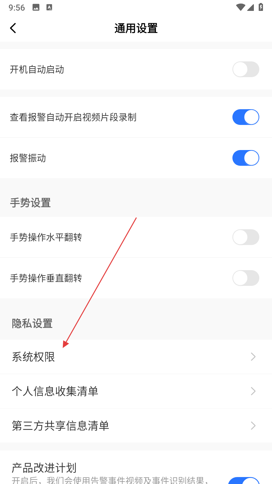 3、在设置界面里,点击系统权限选项,进入系统权限管理页面。