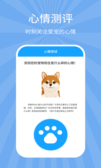 全面提供了与众不同逗狗跟猫玩的模式:心情测试、耳朵查看器、宠物训练、年龄换算、视觉盛宴等。