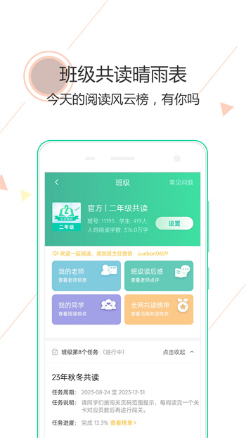 1.参与共同阅读:孩子可以参与到阅伴或老师组织的共读活动中,与全国、班里的同学共同阅读。班级共读的闯关排行榜对孩子形成强有力的激励。