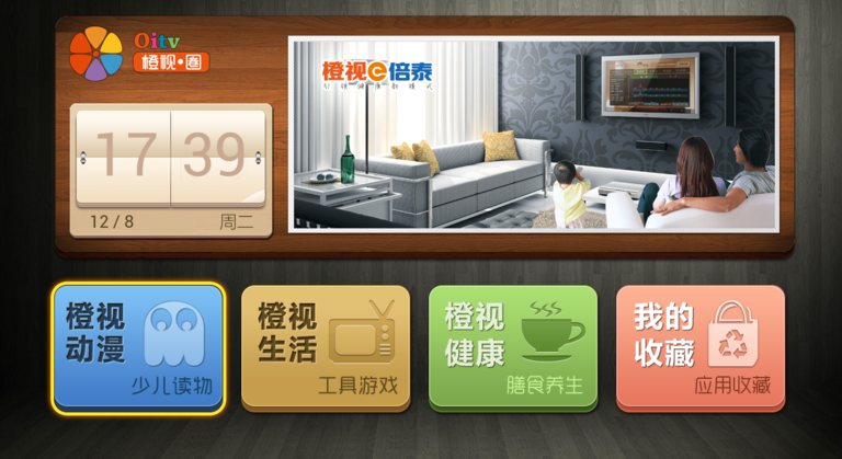 橙视圈TV版聚合了优质的民族文化、历史文化、娱乐文化内容,将其包装成为操作简单、老少咸宜的电视服务,并以家庭为单位进行传播,努力让电视这张屏幕不被个人娱乐化发展的趋势所困扰,成为真正的家庭互动渠道和焦点!