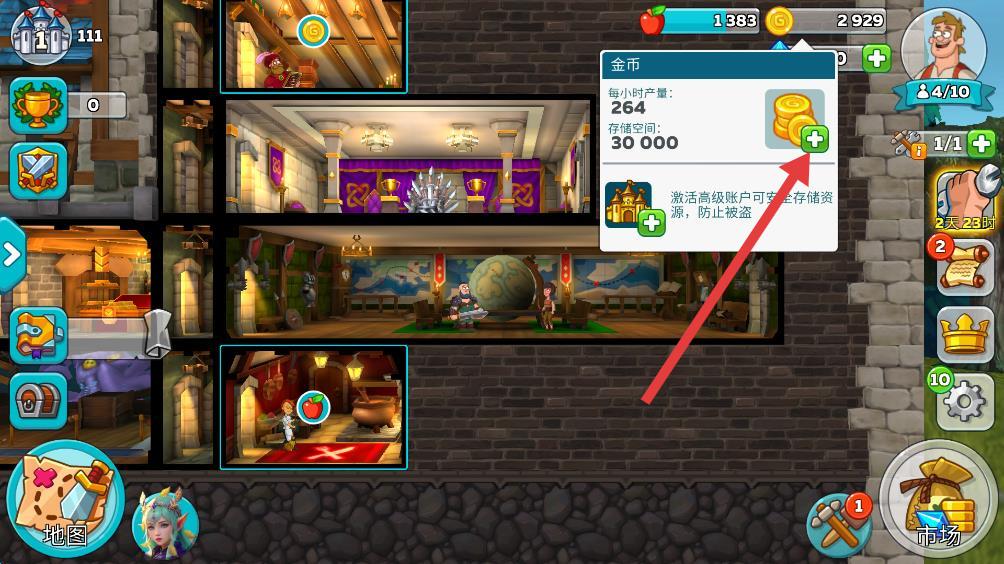 1、点击屏幕右上方显示金币数量旁边的+图标。