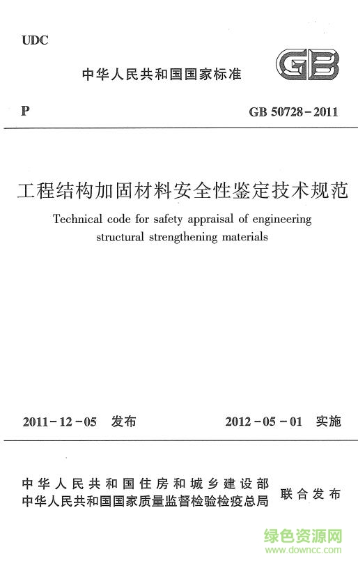 本规范适用于结构加固工程中应用的材料及制品的安全性检验与鉴定。GB50728-2011工程结构加固材料安全性鉴定技术规范共分12章和19个附录。主要技术内容包括:总则、术语、基本规定、结构胶粘剂、裂缝注浆料、结构加固用水泥基灌浆料、结构加固用聚合物改性水泥砂浆、纤维复合材、钢丝绳、合成纤维改性混凝土和砂浆、钢纤维混凝土、后锚固连接件。