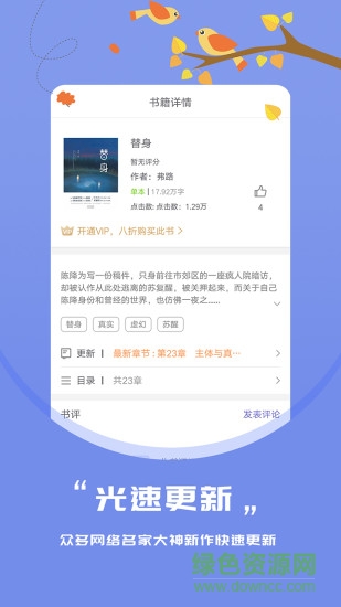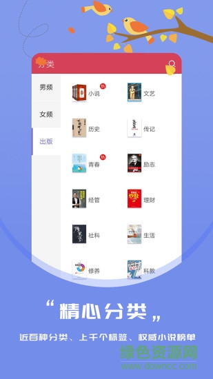 知鸟阅读是一款简单好用的手机读书app,内含丰富小说书籍内容,分类清晰在线阅读收藏实时更新提醒。快来绿色资源网下载体验吧!