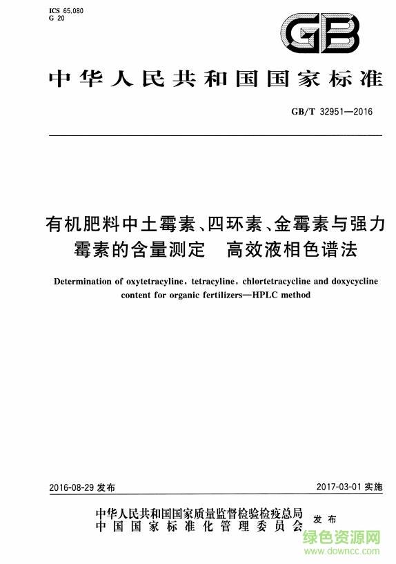 英文名称: Determination of oxytetracyline, tetracyline, chlortetracycline and doxycycline content for organic fertilizers-HPLC method