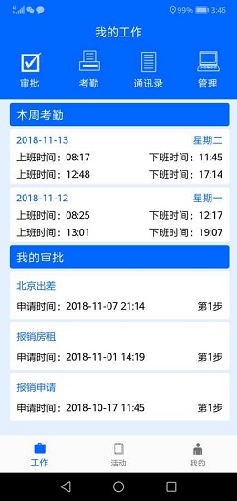 事务审批:提供多种事务审批的通用模版,并支持定制模版,大大简化了事务审批设置。审批进程一目了然。可以自定义审批流程。大大提高了企业事务审批的效率。