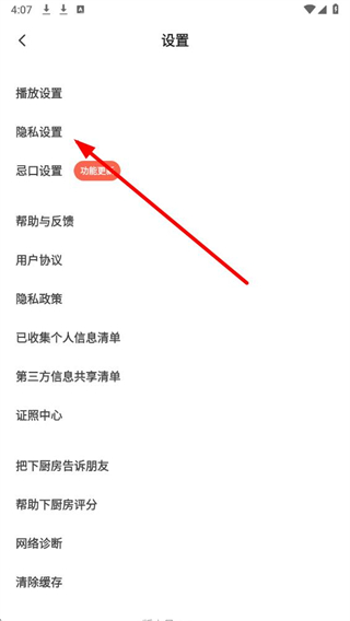 3、在设置页面中,找到隐私设置选项并点击,进入隐私相关界面。