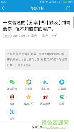 3、内容投放不受限,轻松覆盖基于社交平台的全网用户获取更多资源,不再单枪匹马,相互借力,相互传播,相互触及。
