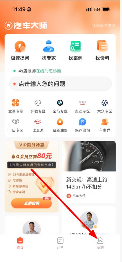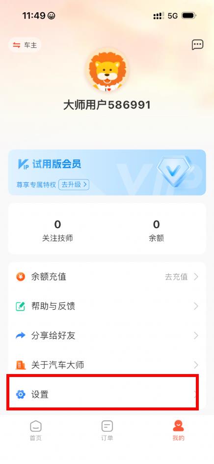 1、在汽车大师APP首页,点击底部我的选项,进入个人中心页面。