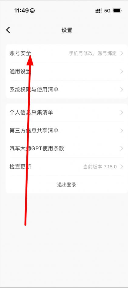 3、在设置界面中,点击账号安全选项,进入账号安全页面。