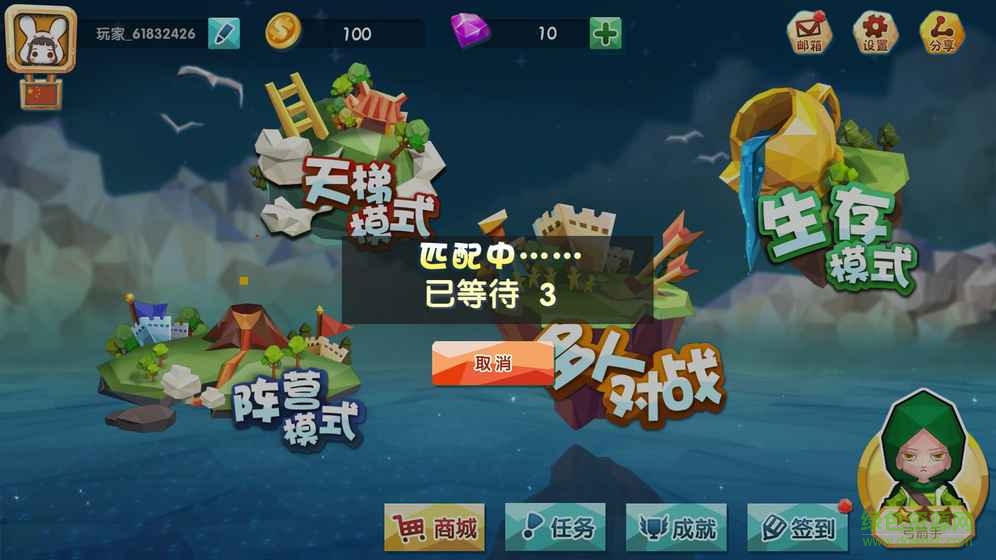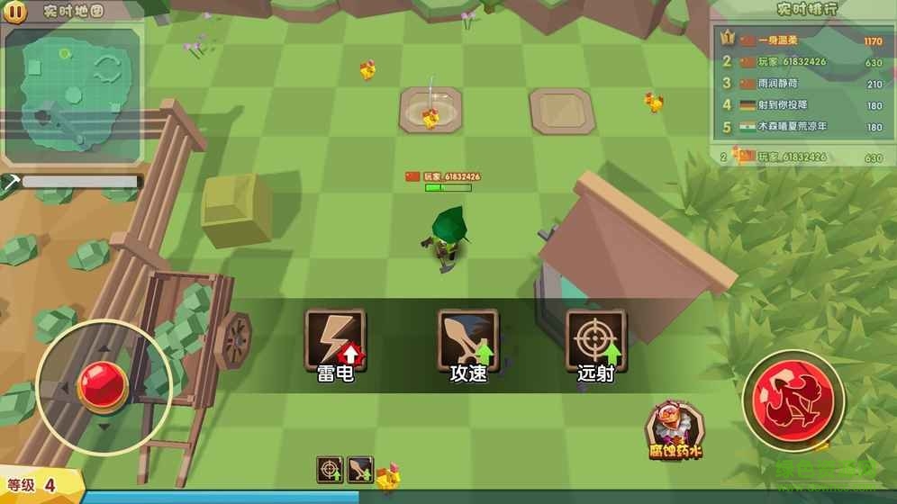 1.通过虚拟摇杆控制走位和射击方向,利用弓箭、飞镖、弓弩、火箭炮等武器击败你的对手;