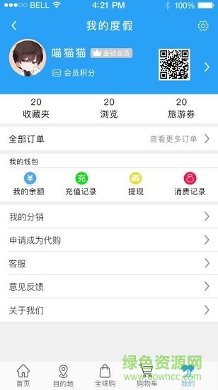 我的度假:用户可以查看已购买旅游项目,支持查询订单;