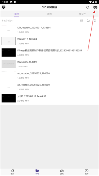2、进入本地视频的界面内,点击右上角VR的功能按钮。