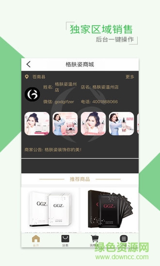 格肤姿app是由格肤姿官方推出的手机客户端,提供丰富的产品信息,全面覆盖了生活纺织、美妆护肤、家用电器等产品,支持乡镇配送服务,价格透明品质有保障,欢迎来绿色资源网下载!