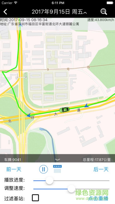 行车轨迹:支持180天车辆历史行踪行程播放。