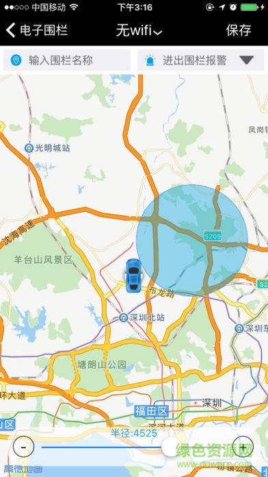 3.【电子围栏】车辆离开限定范围,将发送移动报警信息。