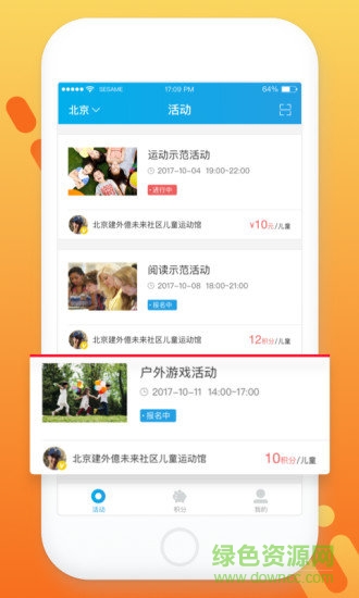 e童行app是专为儿童设计的一款兴趣培养软件,平台中提供了丰富的活动信息,涵盖了户外活动和室内学习,用户可在线报名培养孩子的兴趣爱好,欢迎来绿色资源网下载!