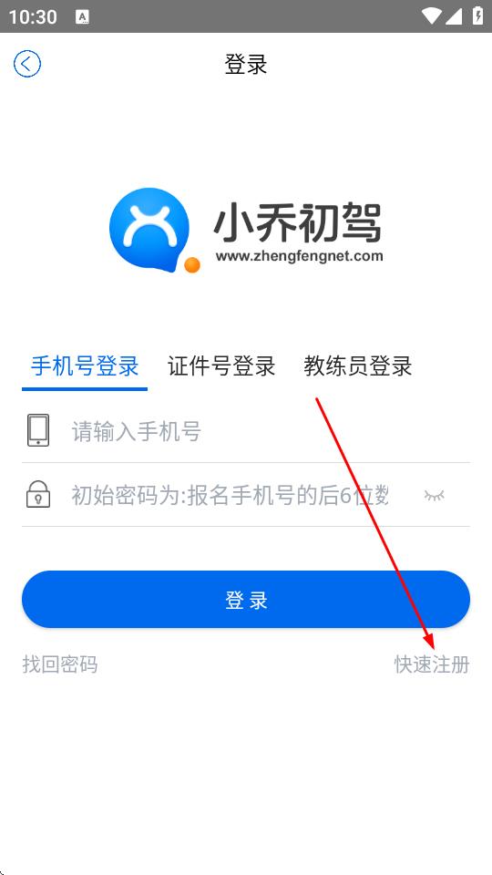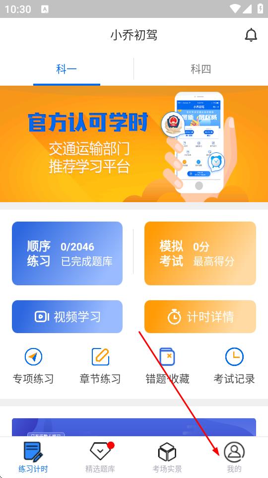 1、打开小乔初驾APP,进入主界面,点击底部导航栏中的我的。