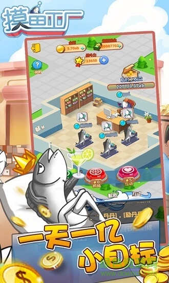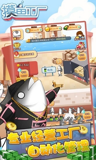 摸鱼工厂游戏是操控简单的挂机类休闲养成游戏,这款游戏中你将成为一个咸鱼来经营自己的工厂,独特的卡通形象,各种搞怪的咸鱼员工造型,绝对让你爆笑不已,开设你的工厂,首先各个公司制作各种各样的产品,销往世界各地,让你的工厂能够实现不断的盈利,发展为屈指可数的大型工厂。