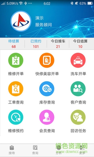 1、各种维修保养数据的管理和查询:包含维修接车、快修美容接车、洗车开单、客户和车辆档案查询、配件库存查询、会员档案与信息查询、维修服务历史查询等