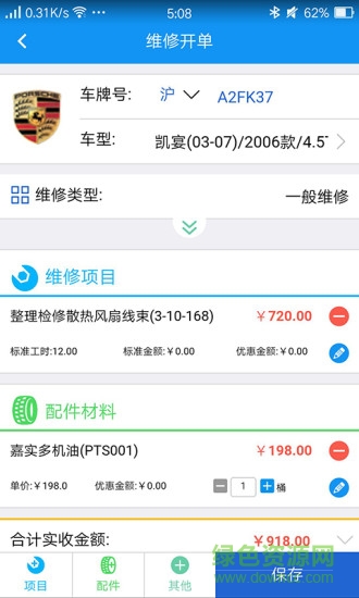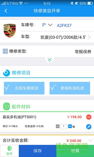 3、维修开单,快修美容开单,洗车开单界面操作流程做了简化处理。