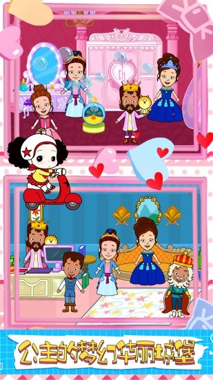 在海底寻找美人鱼的秘密,在太空中成为勇敢的小宇航员!在这个世界里,你可以遇到巫师、女巫、仙女、国王、公主、精灵、海盗等等稀奇古怪的角色。你还可以创造属于自己的个人魔法故事,并向朋友炫耀你的创造力!探索精灵仙子的房间!巫师的橱柜里藏着些什么呢?巫婆的大锅里面放了什么材料?这些疑问都可以在童话游戏里找到答案哦!触摸、互动和把玩数百种独一无二的魔法物品。你甚至可能会发现其中一些隐藏的惊喜哦!在这个仙境里,你可以遇见很多的仙女,巫师和女巫等等游戏角色。你可以居住在这个充满梦幻和魔幻的世界里,这里有仙女之家,女巫小屋,魔法森林,地下迷宫,巫师房间,仙女衣柜房间,花园,乡村和餐厅等等。
